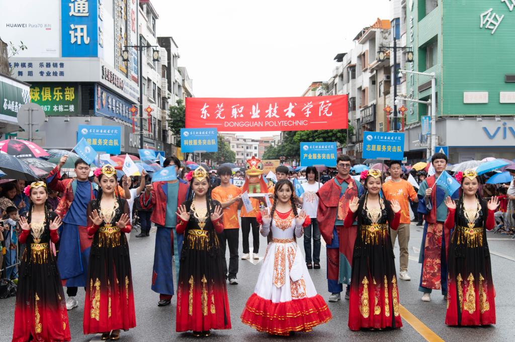 5月1日,“多彩南粤 幸福游会”广东省非物质文化遗产展示系列活动暨2024年茶园游会在东莞市茶山镇盛大开启,我校作为与茶山镇“百千万工程”合作共建的院校,在党委委员、副校长杨云奇的带领下,组织茶园游会服务队参与活动设置的十大主题方阵巡游表演。