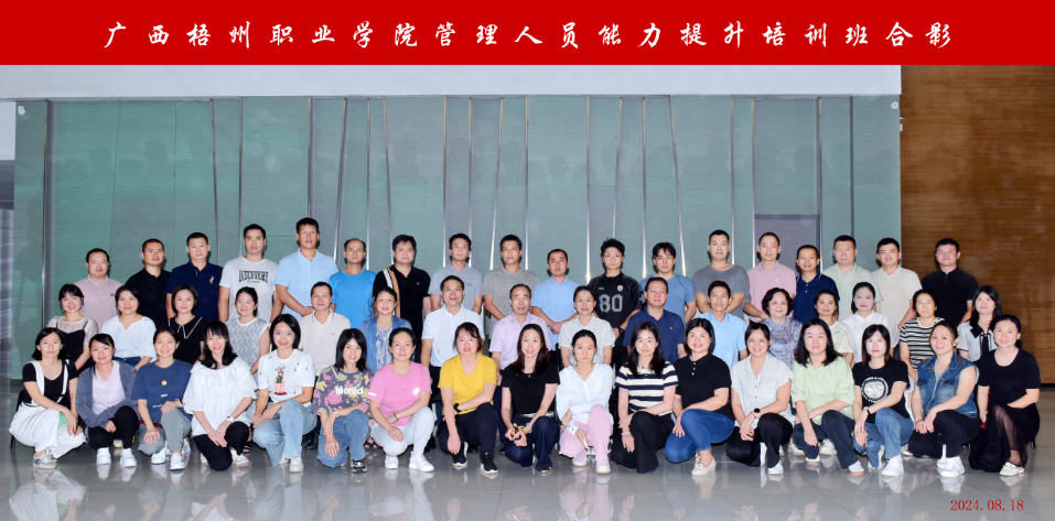 8月18日下午,2024年广西梧州职业学院管理人员能力提升培训班在我校开班。我校党委副书记、校长贺定修,继续教育学院(社区学院)院长苏江,梧州职业学院教学科研处副处长闭静出席开班仪式。梧州职业学院56名管理人员参加培训。