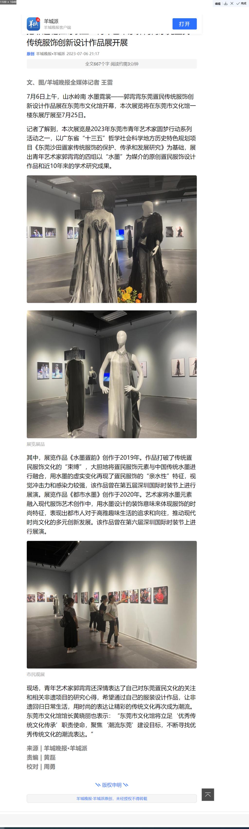 【羊城晚报】把非遗缝在时装上!青年艺术家郭霄霄东莞疍民传统服饰创新设计作品展开展